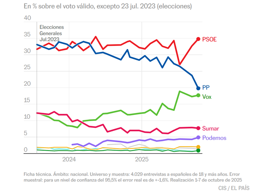 Su barómetro de este lunes catapulta al PSOE y hunde al PP. El estudio puede estar capturando tendencias reales del electorado —como la recuperación del PSOE en septiembre o el crecimiento de Vox desde verano—, pero la estimación oficial del organismo no tiene credibilidad. Estos son los motivos.