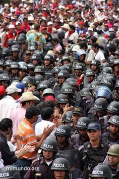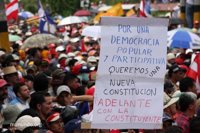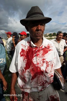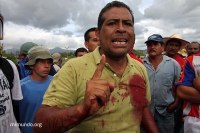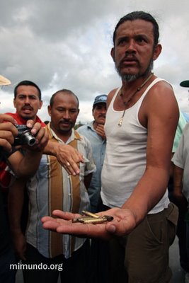 “El ejército ha disparado contra la población civil totalmente desarmada. Por mas de cinco horas la población se ha portado tan respetuosa del ejército y de la policía. No ha habido ninguna confrontación. La gente no traía palos, no traía armas. A todos los compañeros se les había decomisado cualquier piedra. Pero el ejército ha disparado así, sin alma, sin necesidad. No había necesidad de disparar. Muchos estaban intentando quitar la malla [para ingresar a la pista de aterrizaje del aeropuerto Toncontin], eso no se puede negar. Pero no era necesario disparar con balas a la gente. Una vez más, para que el pueblo hondureño se mantenga unido: la sangre de un mártir es la semilla para muchos hondureños que se van a poner en pie, firmes ante este gobierno de facto, este gobierno de delincuentes. Solo estamos acatando la Constitución de la Republica en su artículo tres que dice: Nadie le debe obediencia a un gobierno usurpador.”