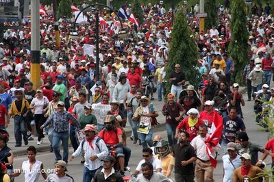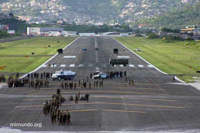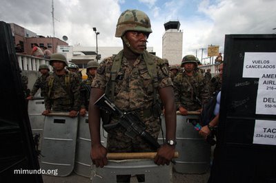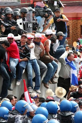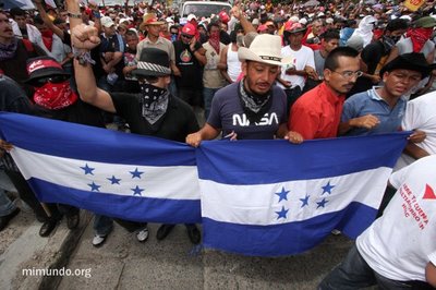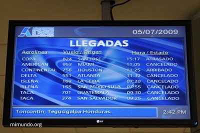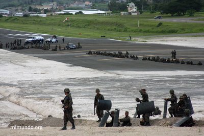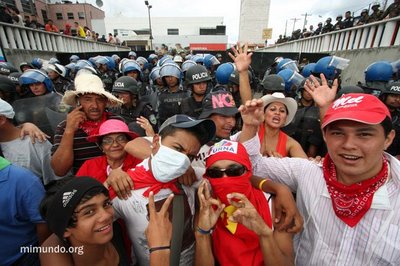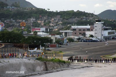 En el día en que regresaría el Presidente destituido Manuel Zelaya, miles de personas se reunían en la Universidad Pedagógica para caminar desde allí al aeropuerto para recibirlo. Mientras tanto, algunas personas se adelantaron al Aeropuerto Toncontin, a pesar de la sofocante presencia de las fuerzas de seguridad hondureñas.
